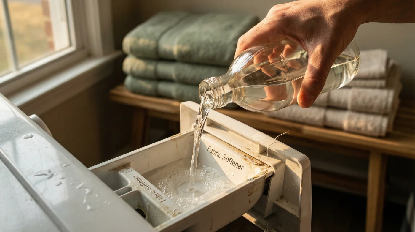 - The Magic Ingredient: Pour 1/2 to 1 cup of distilled white vinegar into the fabric softener compartment of your machine. If you use a top loader without a dispenser, add it manually during the final rinse cycle.